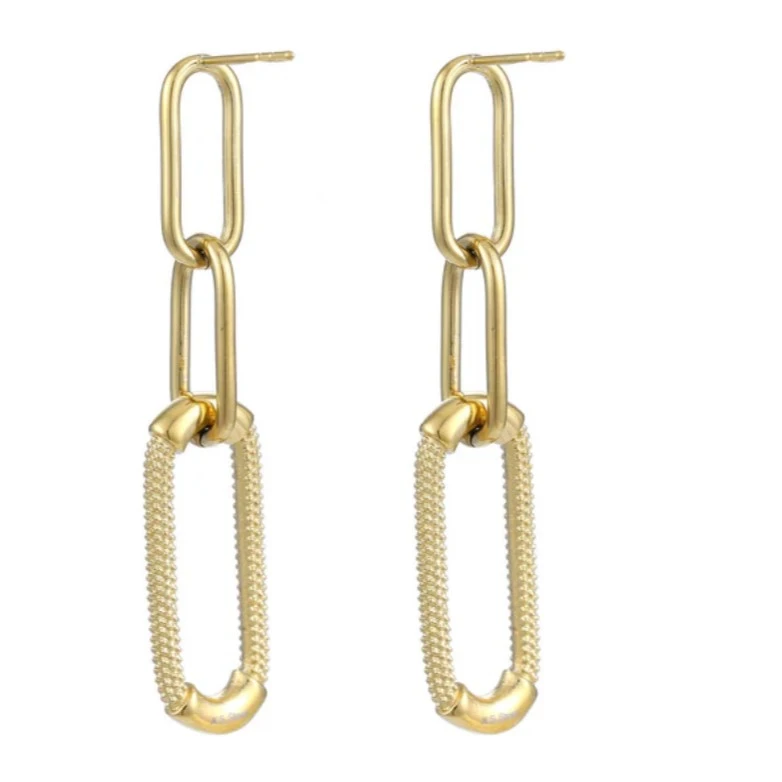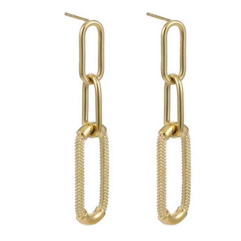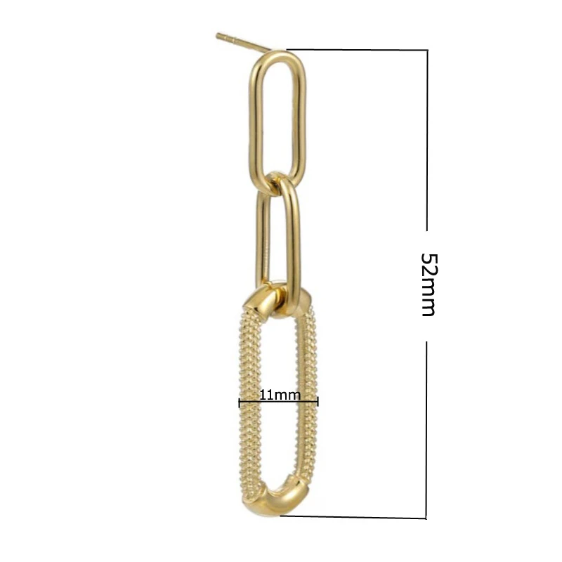 Visací náušnice z chirurgické oceli. Náušnice jsou pozlacené technologií PVD. Celková délka náušnic 52mm. Náušnicové zapínání je na puzetky. Uvedená cena platí za pár.
