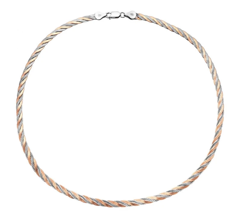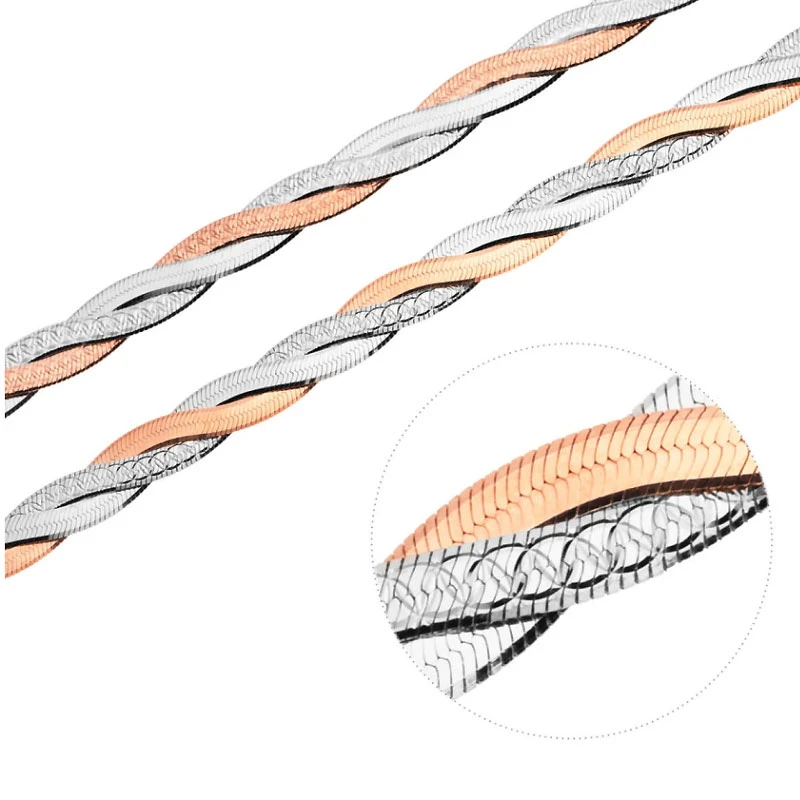 Pozlacený třířadý náhrdelník pro ženy ze stříbra 925/1000. Pozlacení je provedeno růžovým zlatem. Stříbrná řada má porhodiovaný povrch. Elegantní náhrdelník široký 4mm. Zapínání náhrdelníku je na karabinku.