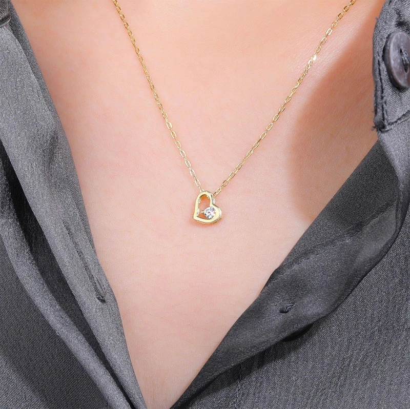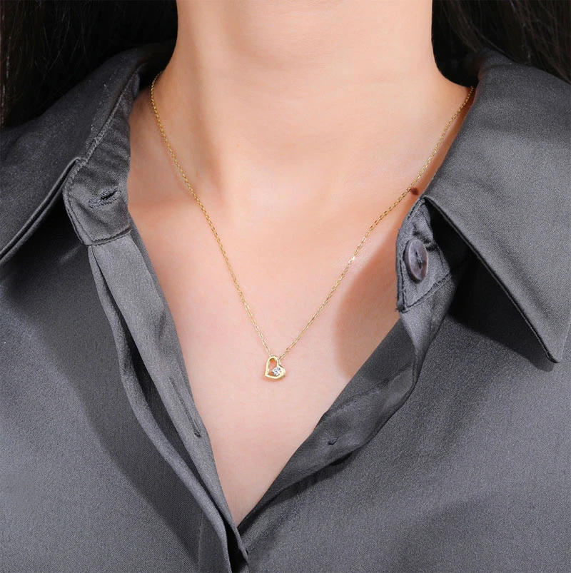 Náhrdelník ze stříbra ryzosti 925/1000 pozlacený žlutým 14k zlatem. Srdíčko ozdobené čirým zirkonem má rozměr 6x7mm. Řetízek vzoru anker je široký 1,0mm. Délku náhrdelníku lze nastavit v rozmezí 40-45cm.