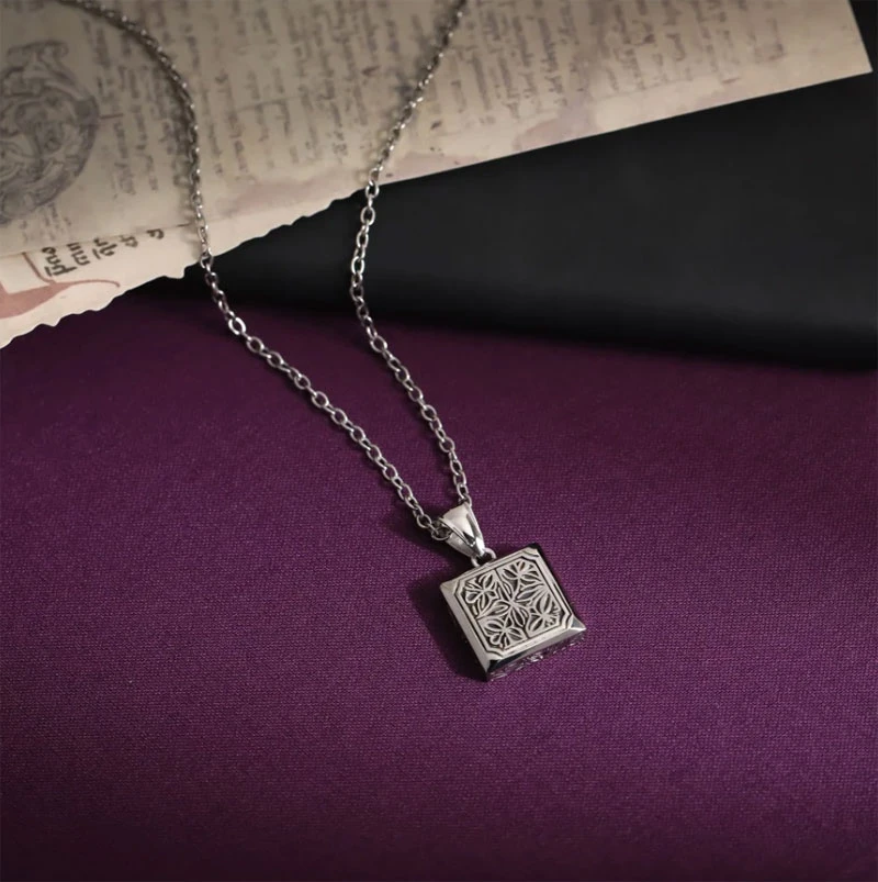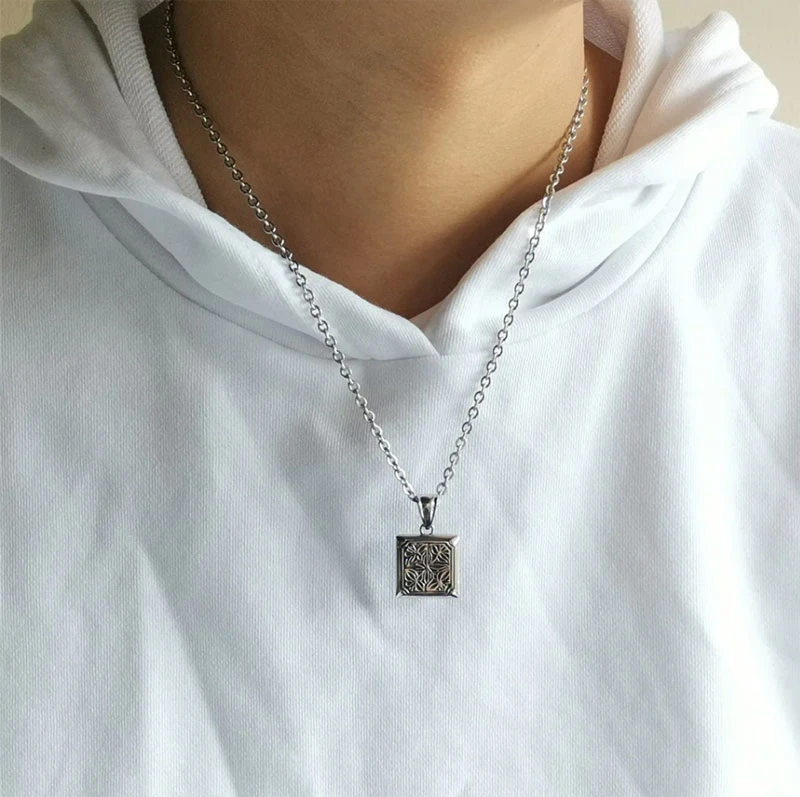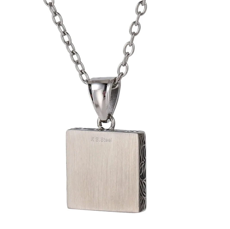 Přívěsek na řetízek z chirurgické oceli se vzorem ve tvaru čtverce. Vzor zvýrazněný černou barvou je plastický. K přívěsku náleží řetízek z chirurgické oceli vzor ankr dlouhý 55 cm. Rozměr přívěsku 18x18x5mm.