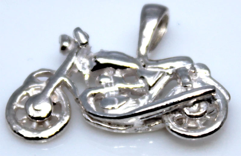 Přívěsek s motivem motorky vyrobený ze stříbra 925/000. Závěsným očkem na přívěšku lze provléct stříbrný řetízek s maximálním průměrem 2mm.