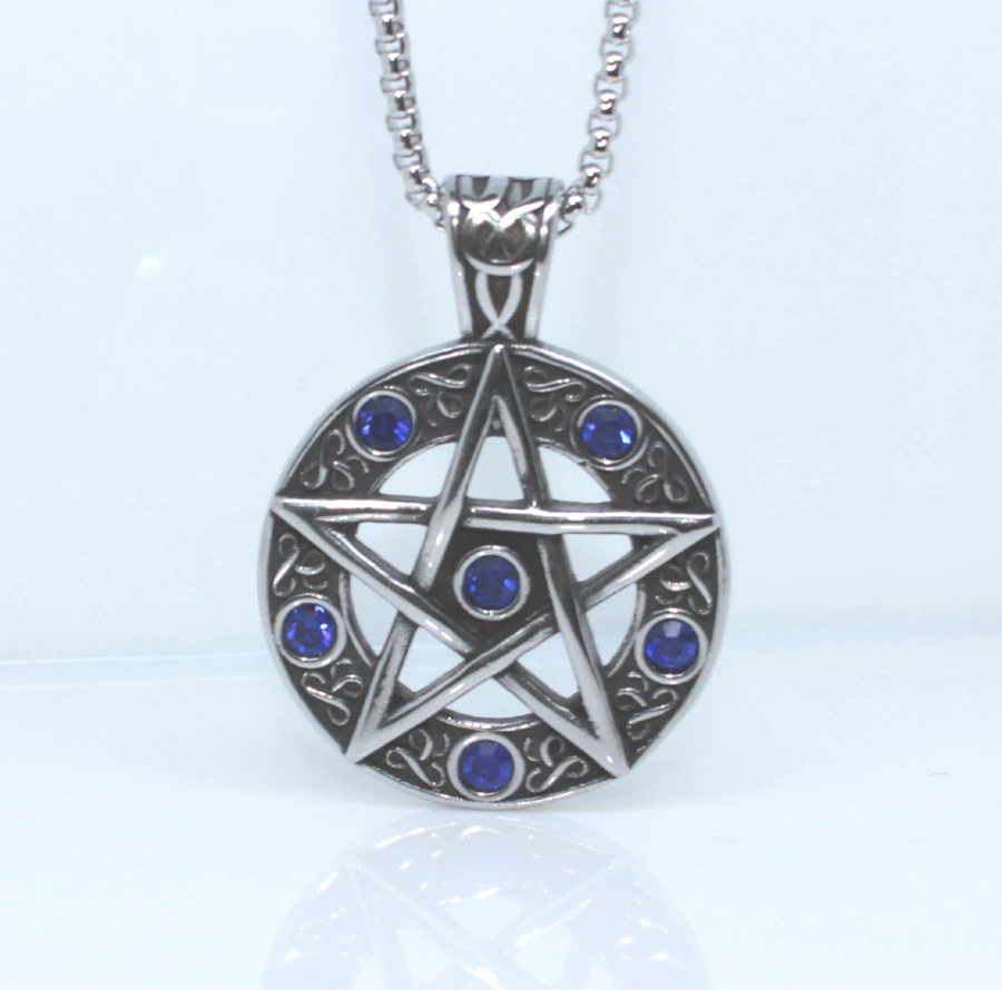 Ocelový náhrdelník s přívěskem pentagramu (pěticípé hvězdy). Pentagram je velmi silný symbol, který používali a používají gnostici, čarodějové, satanisté svobodní zednáři, mágové a další po celém světě. Pokaždé záleží za jakým účelem sílu pentagramu užíváme, zda pro dobro, nebo zlo. Důležité je to co člověk nosí v srdci. Člověk co má ve svém srdci zlobu použije symbol pentagramu pro zlé věci, naopak člověk nosící ve svém srdci dobro využije sílu pentagramu pro dobré věci. Náhrdelník je zhotovený z chirurgické oceli.