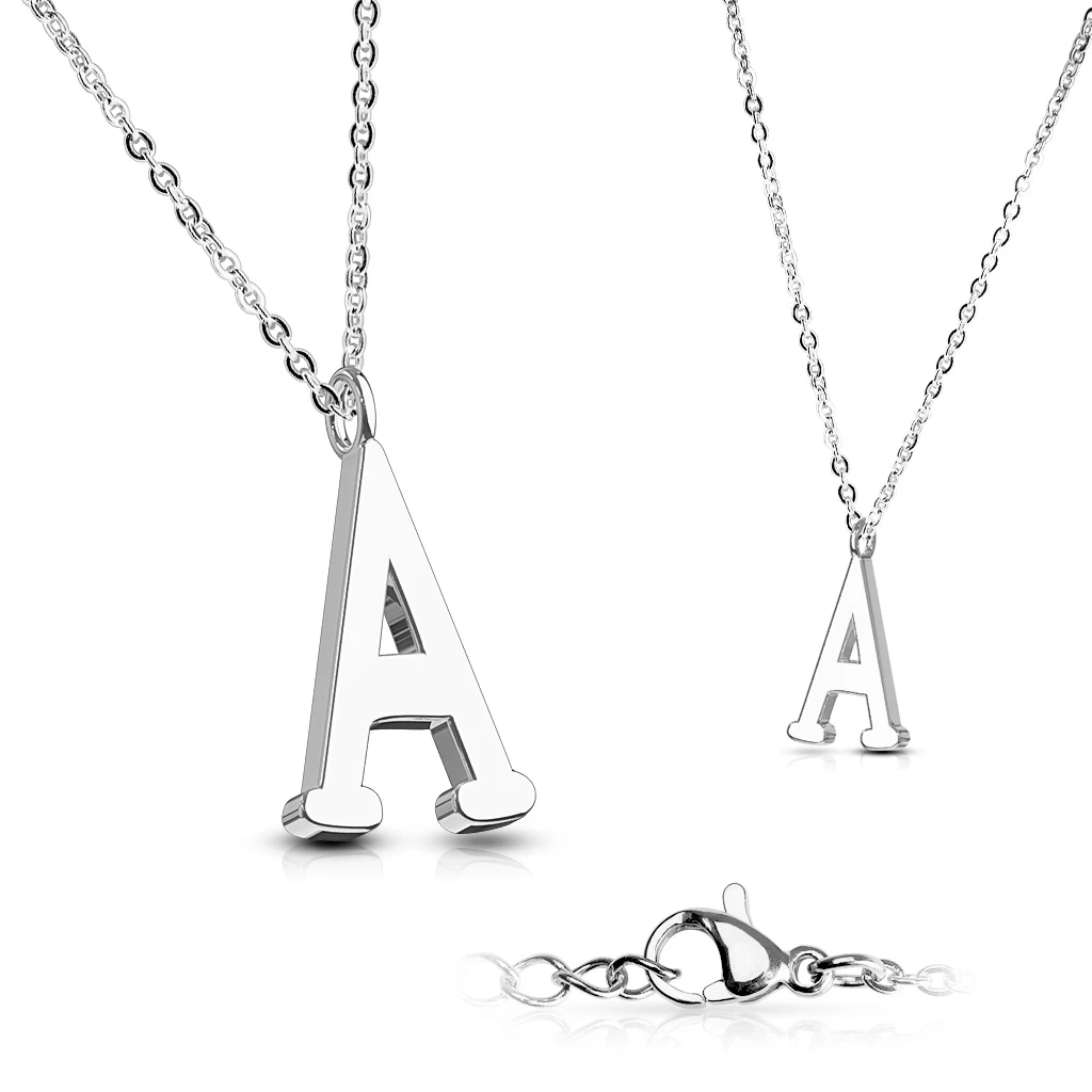 Ocelový přívěsek písmenko A + řetízek z chirurgické oceli.