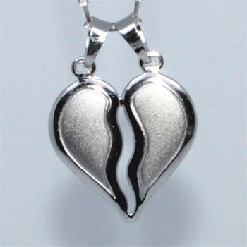 Přívěsek pro dva ze stříbra 925/000. Srdíčko rozlomíte na stejné díly a tím zůstanete spojeni. Každý díl má rozměr 20x8 mm. Očkem pro zavěšení lze protáhnout stříbrný řetízek s maximálním průměrem 3,5 mm.