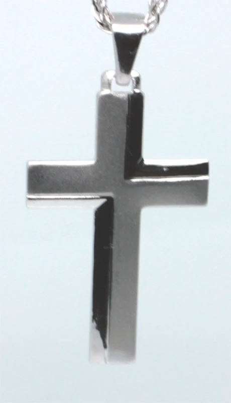 Křížek na krk vyrobený ze stříbra 925/000. Křížek má porhodiovaný povrch. Rozměr přívěsku 33x21mm. Očkem na křížku je možné protáhnout stříbrný řetízek s průměrem do 3mm.