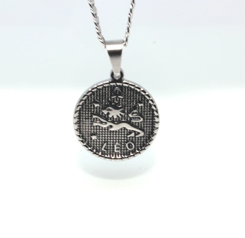 Přívěsek se znamením Lev (23. července – 22. srpna) vyrobený z chirurgické oceli. Znamení Lva je plastické na černo-stříbrném podkladě. Přívěsek má průměr 25mm. K přívěsku se znamením náleží řetízek z chirurgické oceli dlouhý 60cm.