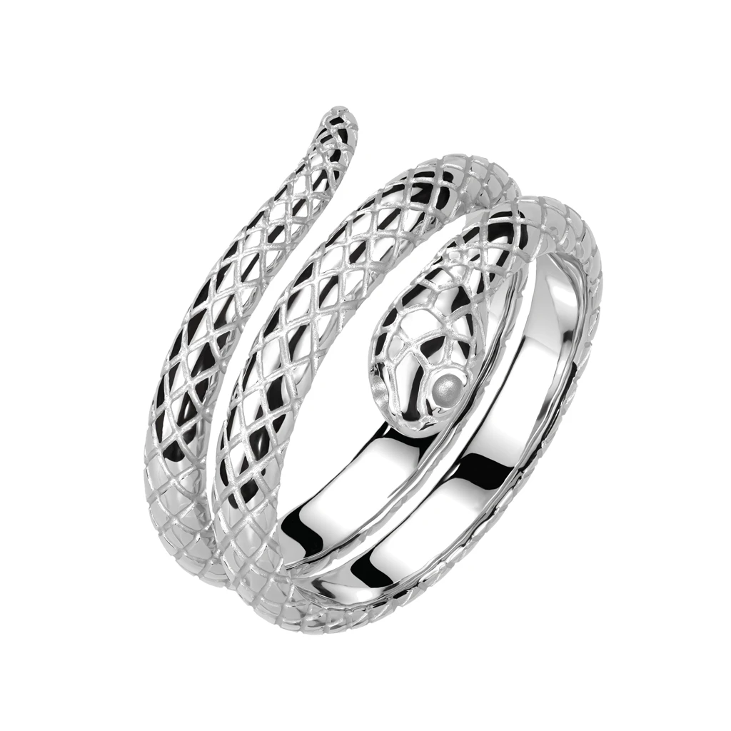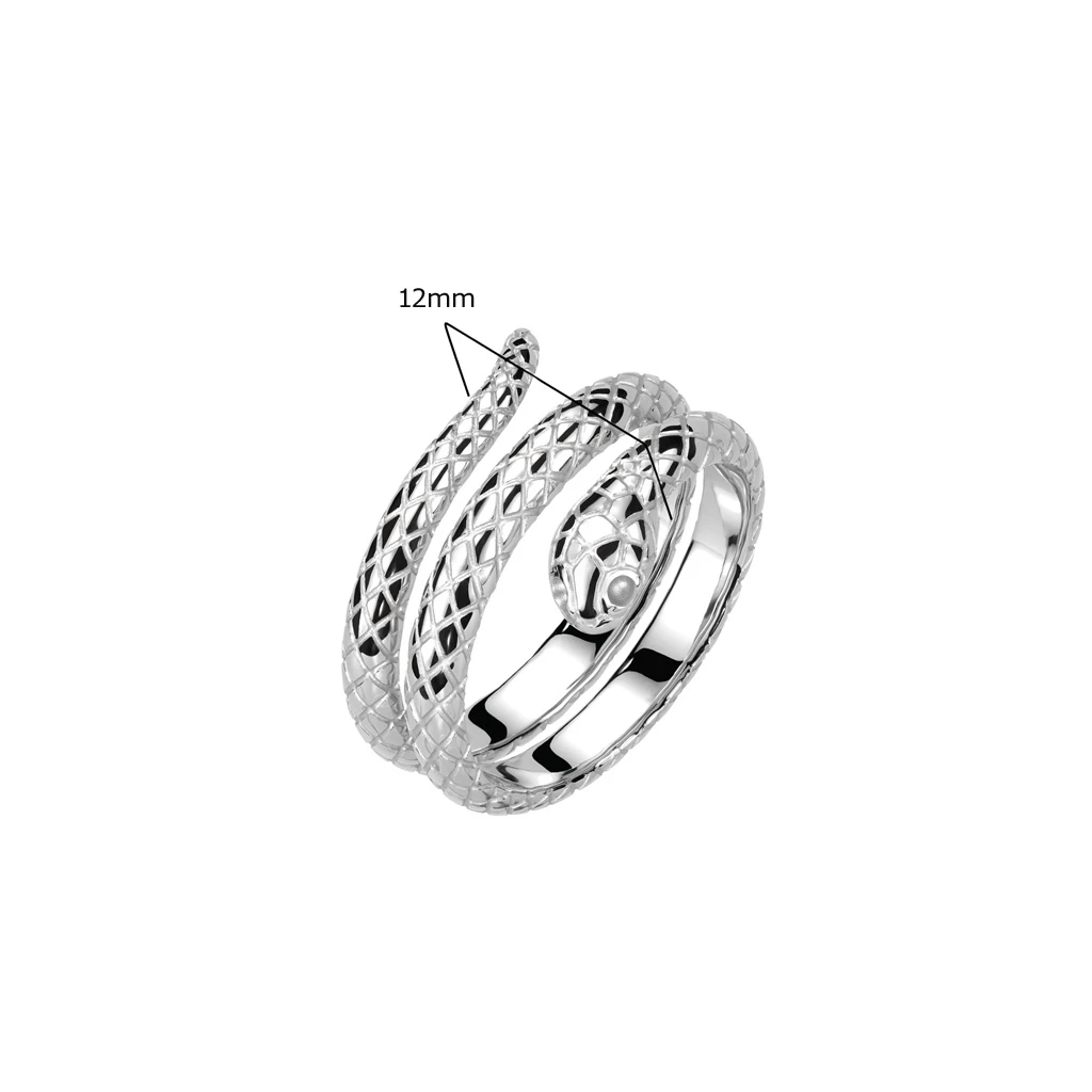 Hadí prsten z chirurgické oceli, který obtočí Váš prst. Povrch prstenu je leštěný s plastickým vzorem hadí kůže. Had je symbolem transformace, moudrosti a znovuzrození. Prsten je široký 12mm.