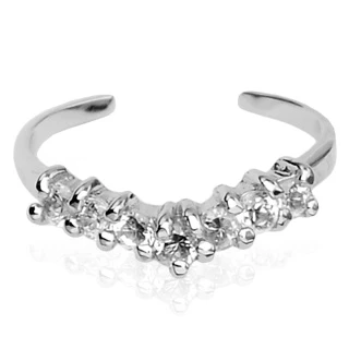 Stříbrný prsten na nohu se zirkony. Vnitřní průměr prstýnku lze přizpůsobit vlastní potřebě.