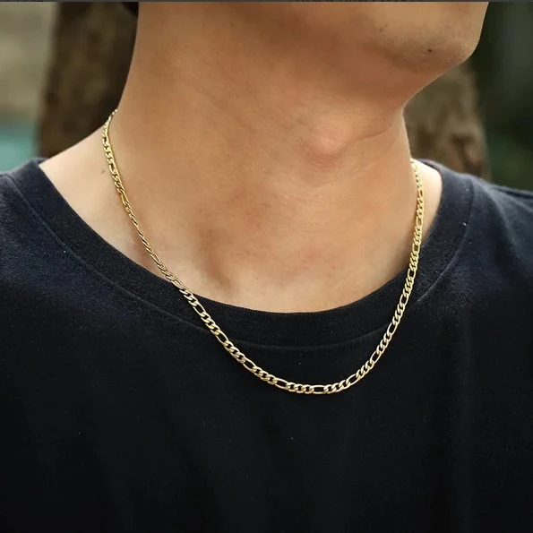 Řetízek z chirurgické oceli s leštěným pozlaceným povrchem. Jedná se o klasický řetízek vzor figaro, který nepodléhá módním trendům. Řetízek je široký 4mm, délka řetízku 50cm.