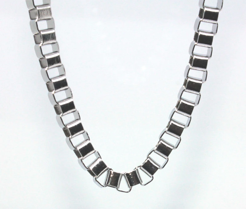 Řetízek zhotovený z chirurgické oceli. Povrch řetízku je leštěný. Řetízek má čtvercový průřez. Rozměr 3x3mm. Zapínání řetízku je na karabinu.