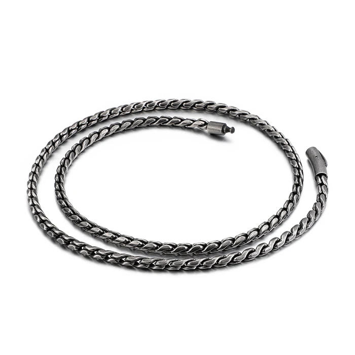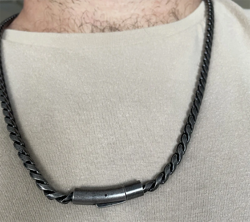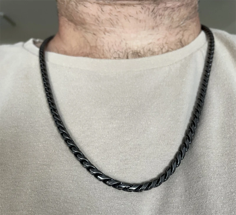 Pánský ocelový řetízek na krk. Povrch řetízku má barvu pistolové šedi. Délka náhrdelníku 66cm, průměr 5mm.