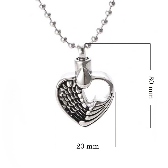 Ocelový přívěsek srdíčko. Závěsné očko srdíčku lze odšroubovat a do přívěsku lze nasypat malé množství popela. Rozměr přívěsku 30x20mm najdete zobrazený na podpůrné fotografii. K přívěsku náleží ocelový řetízek dlouhý 60 cm. Na přání lze řetízek zdarma zkrátit. Na zadní stranu přívěsku je možné vyrýt např. jméno.