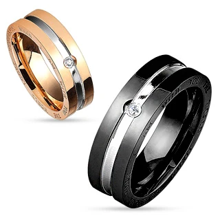 Prstýnky z chirurgické oceli, které je možné považovat za snubní. Prstýnky dámských velikostí 49–57 jsou široké 6mm a mají zlaté okraje, pánské prsteny ve velikostech 59–67 jsou široké 8mm a jejich okraje jsou černé.