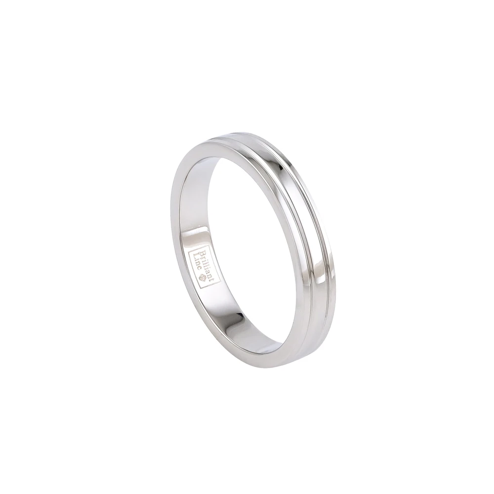 Prsten z chirurgické oceli, který lze použít jako snubní. Prsten má jednoduchý design se dvěma proužky po obvodě. Povrch prstenu je hladký leštěný. Prstýnek je široký 4 mm.