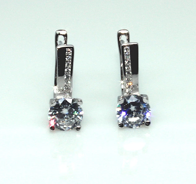 Stříbrné visací náušnice se zirkony. Povrch náušnic je porhodiovaný. Úprava rhodiováním zamezuje přirozené oxidaci stříbra a současně dodává náušnicím zářivou barvu a lesk. Kulatý zirkon má průměr 7mm, ostatní rozměry náušnic najdete na podpůrné fotografii.
