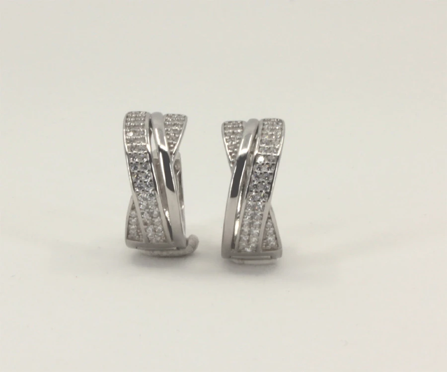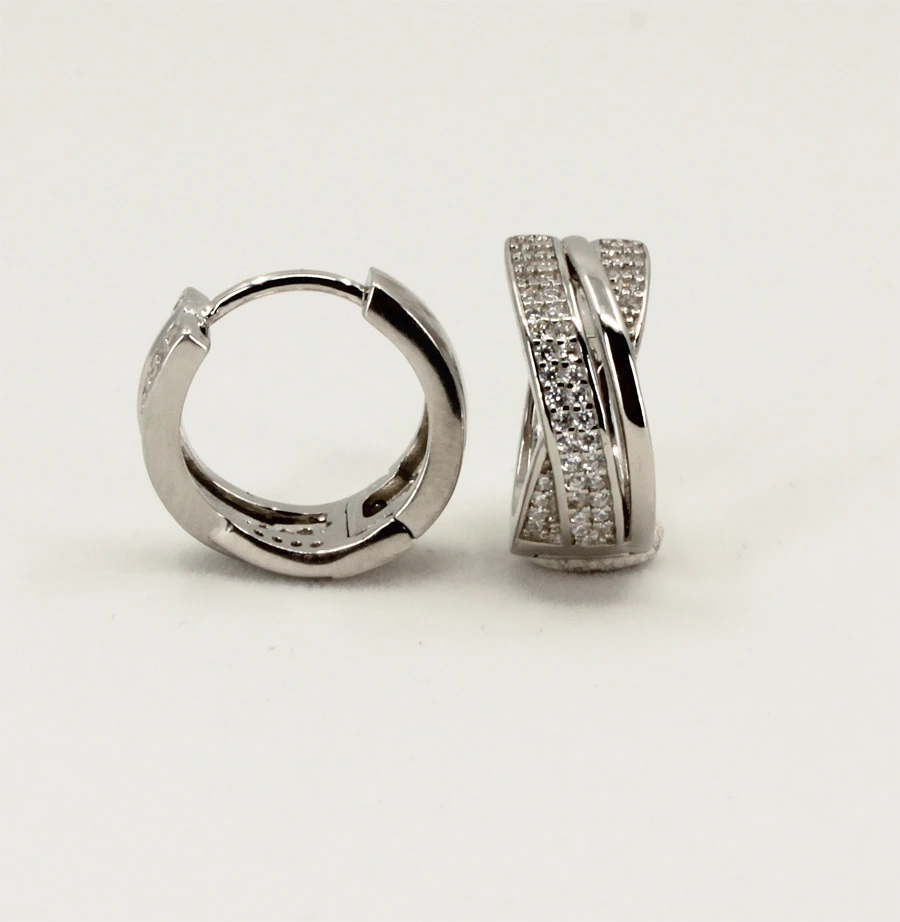 Náušnice kroužky se zirkony. Náušnice jsou vyrobené z kvalitního stříbra ryzosti 925/1000 a osazené jsou prvotřídními zirkony. Povrch náušnic je porhodiovaný. Úprava rhodiováním dodává náušnicím jasnou barvu s leskem a zamezuje přirozené oxidaci stříbra. Vnější průměr průměr náušnic 16mm, šířka 7mm. Náušnicové zapínání je kloubové.