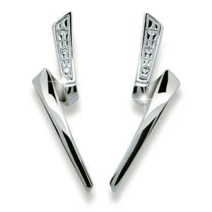 Elegantní náušnice vyrobené ze stříbra 925/000. Pecky mají porhodiovaný povrch. Povrch upravený rhodiem dává náušnicím krásnou barvu s jasným leskem podtržené zářivými zirkony. Nanesené rhodium současně zamezuje přirozené oxidaci stříbra a potlačuje vyvolání alergických reakcí, které stříbro může způsobovat. Všechny námi nabízené stříbrné šperky jsou označené podle pucovního zákona.