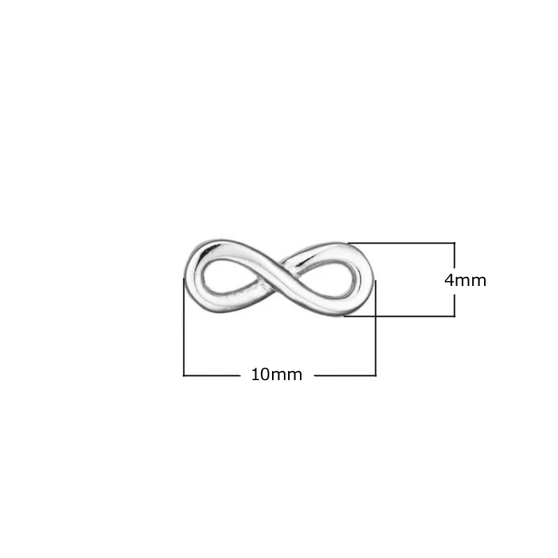 Stříbrné náušnice pecky se symbolem nekonečna. Náušnice jsou vyrobené ze stříbra ryzosti 925/000. Povrch náušnic porhodiovaný. Úprava rhodiováním dodává náušnicím jasnou barvu s leskem, zvyšuje odolnost povrchu proti poškrábání a zamezuje přirozené oxidaci stříbra, náušnice budou mít po dlouhou dobu bezvadný vzhled. Rozměry symbolu nekonečna 4x10 mm. Rozměry najdete vyobrazené na podpůrné fotografii. Náušnicové zapínání je na praktický šroubek.