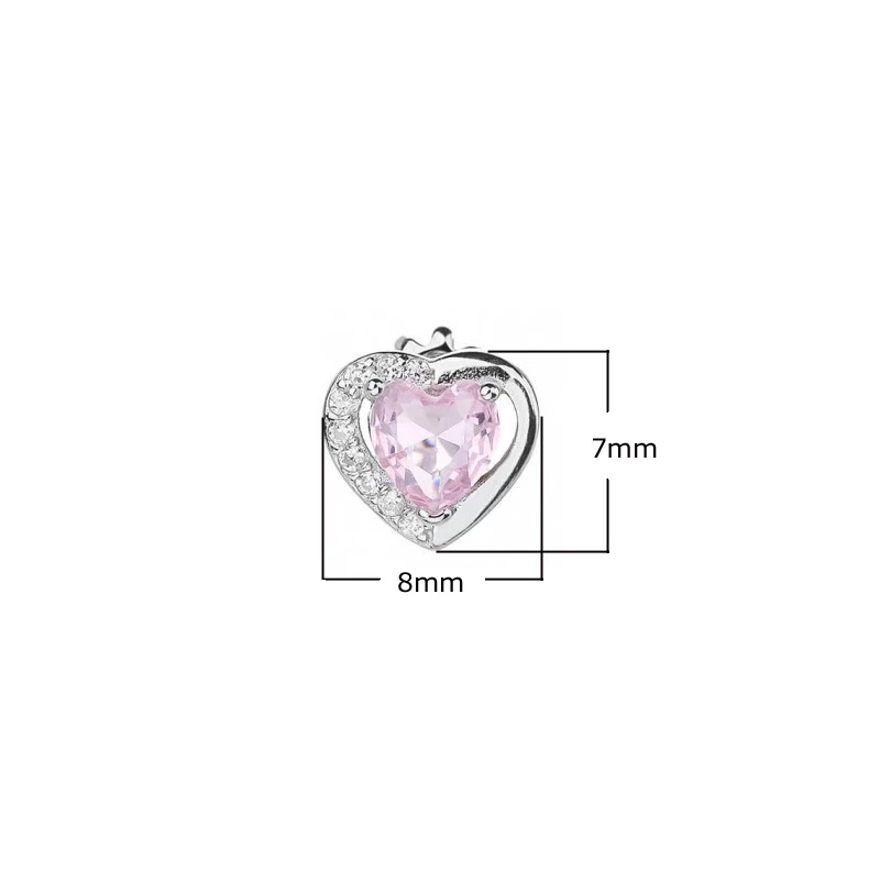 Náušnice srdce vyrobené z kvalitního stříbra 925/1000. Náušnice srdíčka osazené prvotřídními zirkony. Povrch náušnic je porhodiovaný. Úprava rhodiováním dodává náušnicím odolnost proti poškrábání, jasnou barvu s leskem a potlačuje přirozenou oxidaci stříbra. Srdíčka mají rozměr 8x7 mm. Náušnicové zapínání je na šroubek.