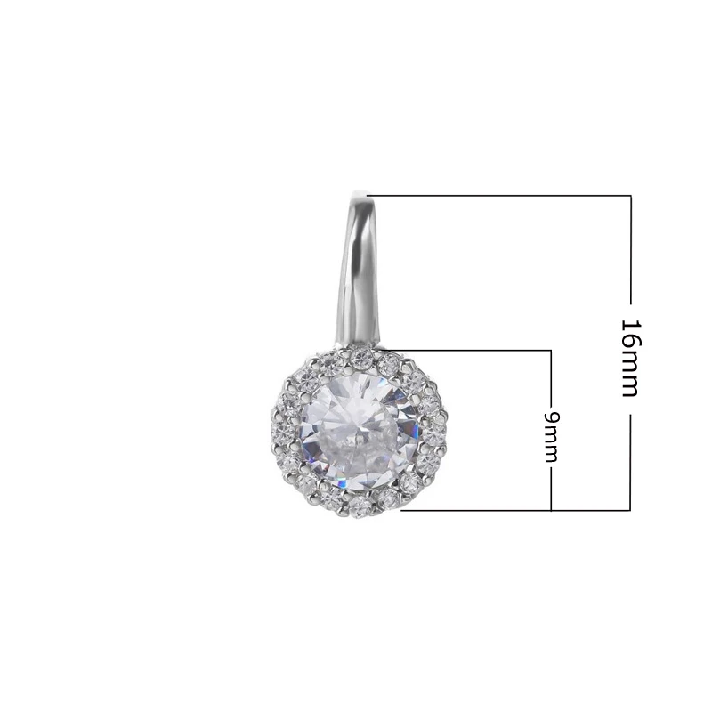Visací náušnice se zirkony ze stříbra ryzosti 925/1000. Povrch náušnic je porodiovaný. Nanesené rodium dodává náušnicím jasnou barvu s leskem, a současně zajišťuje dlouhodobý bezchybný vzhled náušnic. Náušnicové zapínání je na klapku. Rozměry náušnic 16x9mm najdete zobrazené na podpůrné fotografii.