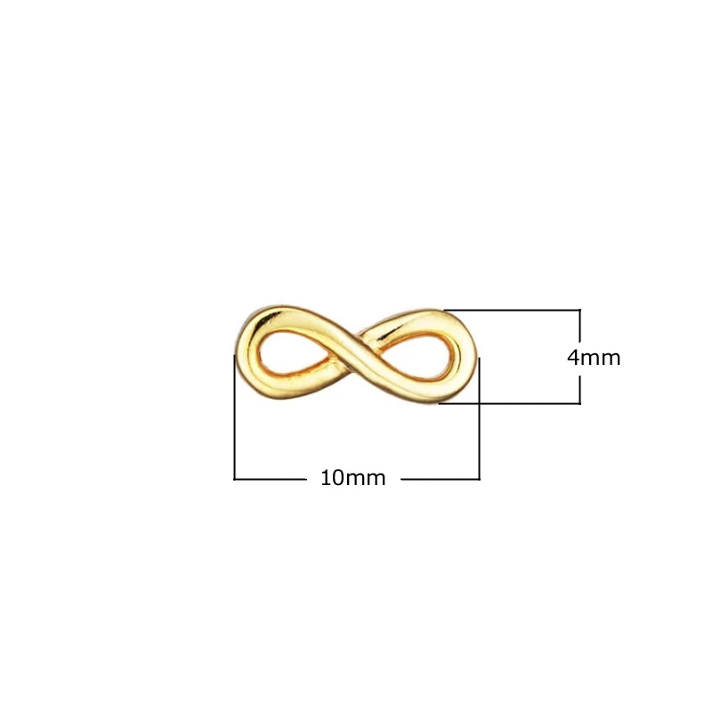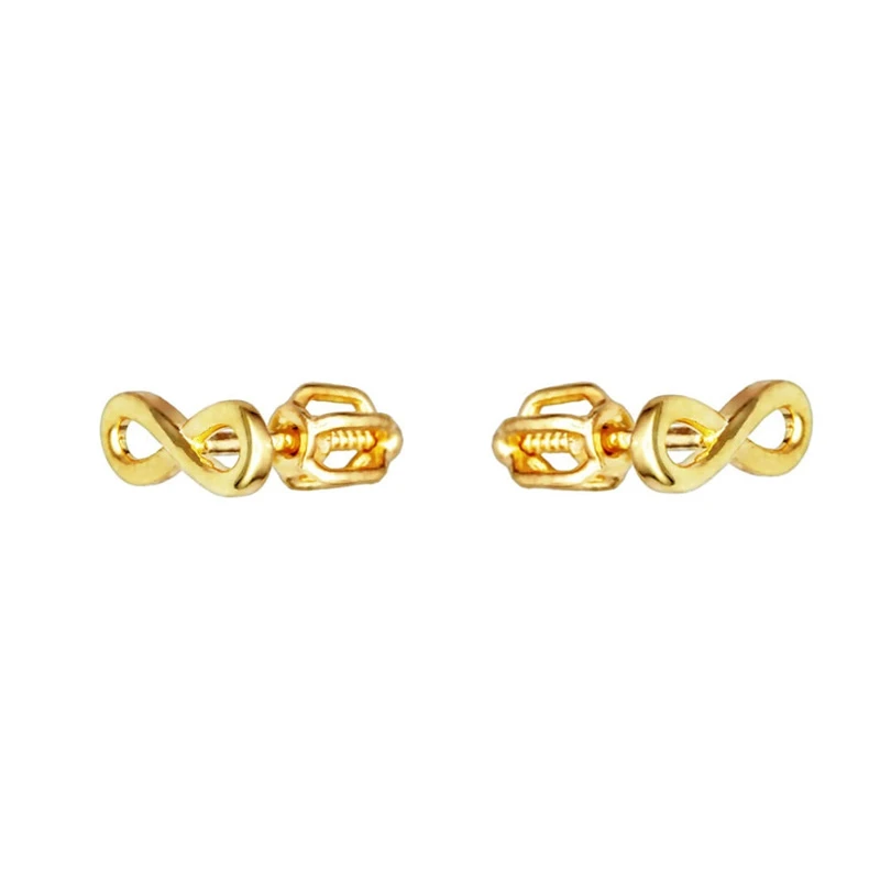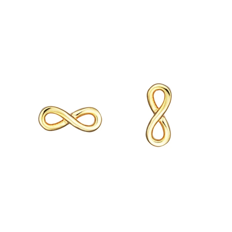Náušnice pecky se symbolem nekonečna na šroubek. Náušnice jsou pozlacené žlutým zlatem. Povrch náušnic je leštěný. Rozměry symbolu nekonečna 4x10 mm. Rozměry najdete vyobrazené na podpůrné fotografii. Náušnicové zapínání je na praktický šroubek.