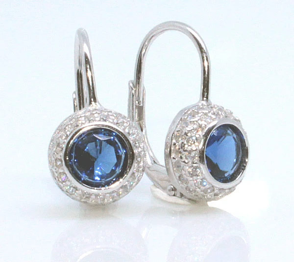 Stříbrné náušnice zdobené zirkony. Povrch náušnic je porodiovaný, nanesené rodium dodává náušnicím jasnou barvu a lesk, současně také zamezuje přirozené oxidaci stříbra. Část zdobená zirkony má průměr 8,5mm, celkový rozměr náušnice 16x8,5x9 mm. Stříbrné náušnice se zapínáním na dámský patent.
