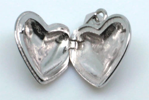 Medailonek srdíčkoze stříbra 925/000. Povrch přívěsku je porhodiovaný.Rozměr přívěsku 13x13mm. Očkem pro zavěšení je možné protáhnout stříbrný řetízek s maximálním průměrem 3,0mm.