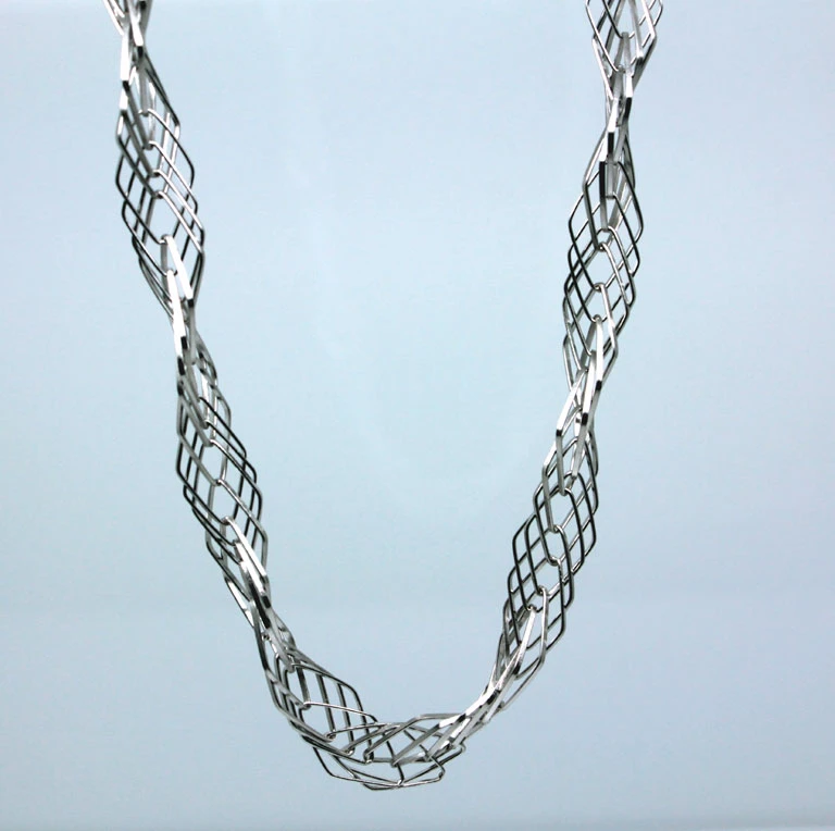 Stříbrný náhrdelník s porodiovaným povrchem. Povrchová úprava rodiem dodává náhrdelníku jasnou barvu a lesk. Náhrdelník se zapíná pomocí karabiny. Průměr 8mm.