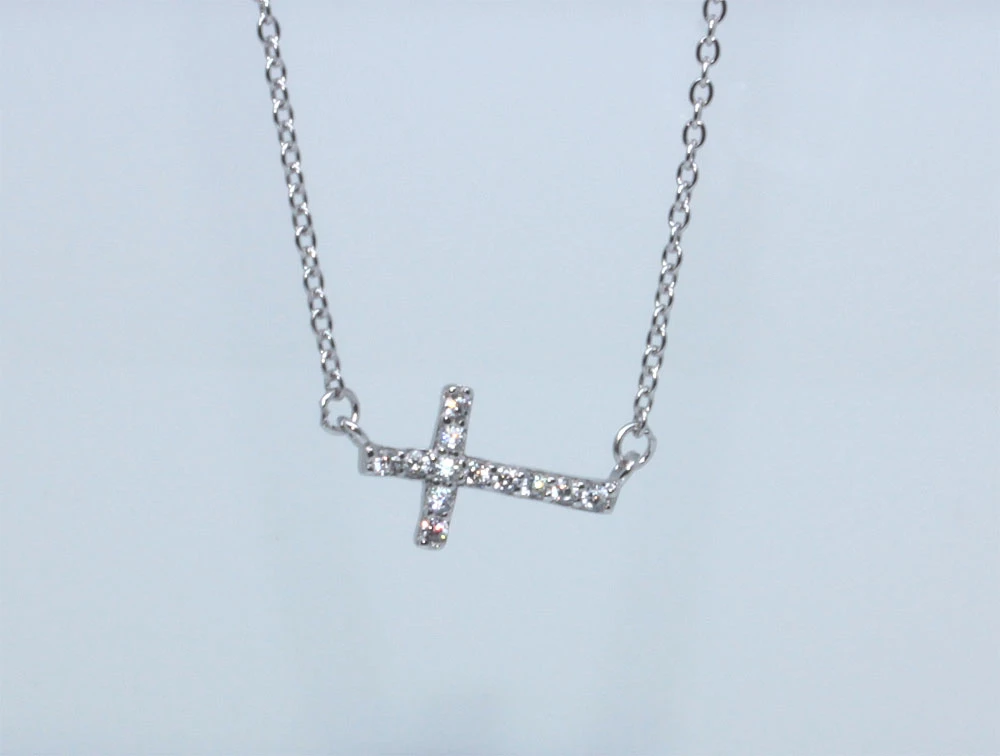 Stříbrný náhrdelník s křížkem. Náhrdelník má porhodiovaný povrch. Zapínání je karabinové. Rozměr křížku se zirkony 13x8mm. Očka na řetízkové části náhrdelníku mají průměr 1,2mm. Délku náhrdelníku je možné nastavit v rozmezí délek 40-43cm.