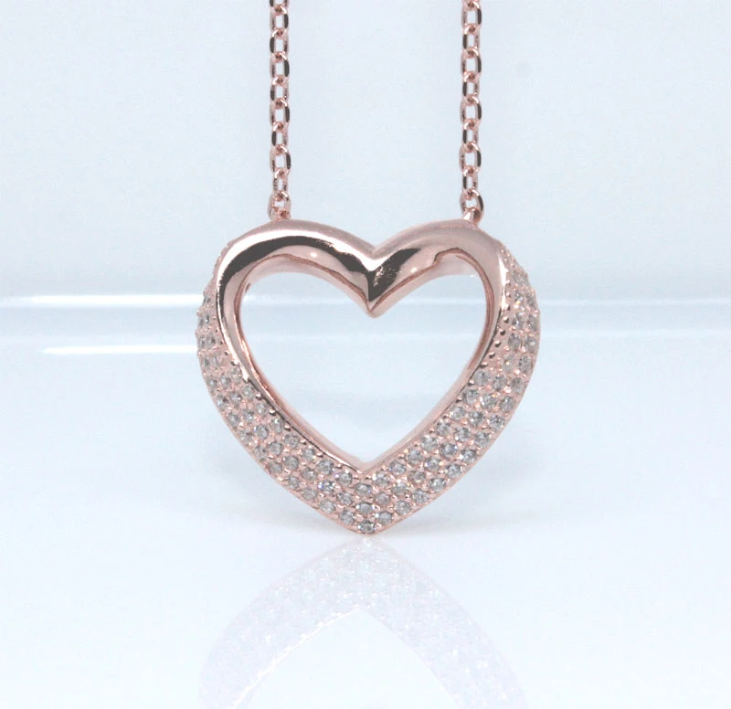 Stříbrný náhrdelník se srdíčkem osazený zirkony. Náhrdelník má pozlacený povrch. Zapínání je karabinové. Rozměr srdíčka se zirkony 17x18mm. Očka na řetízkové části náhrdelníku mají průměr 1,2mm. Délku náhrdelníku je možné nastavit v rozmezí délek 42-45cm.