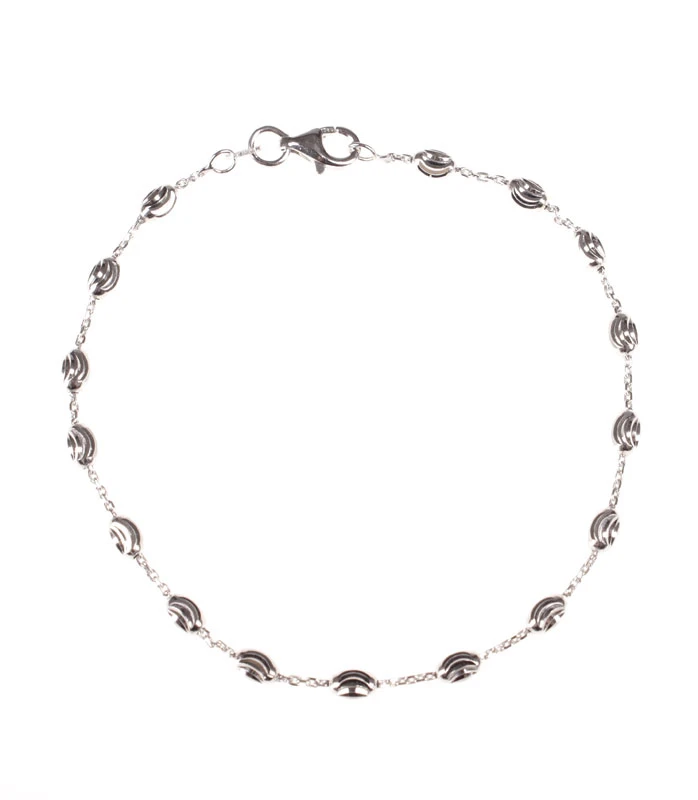 Stříbrný náramek pro ženy. Náramek je vyrobený ze stříbra ryzosti 925/1000. Povrch náramku je porhodiovaný. Úprava rhodiováním dodává náramku jasnou barvu s leskem, chrání povrch náramku proti poškrábání náramek tak bude mít dlouhou dobu bezvadný vzhled. Oválné články mají rozměr 5x3mm, řetízkové části jsou široké 1,0mm. Náramek má zapínání na karabinku.