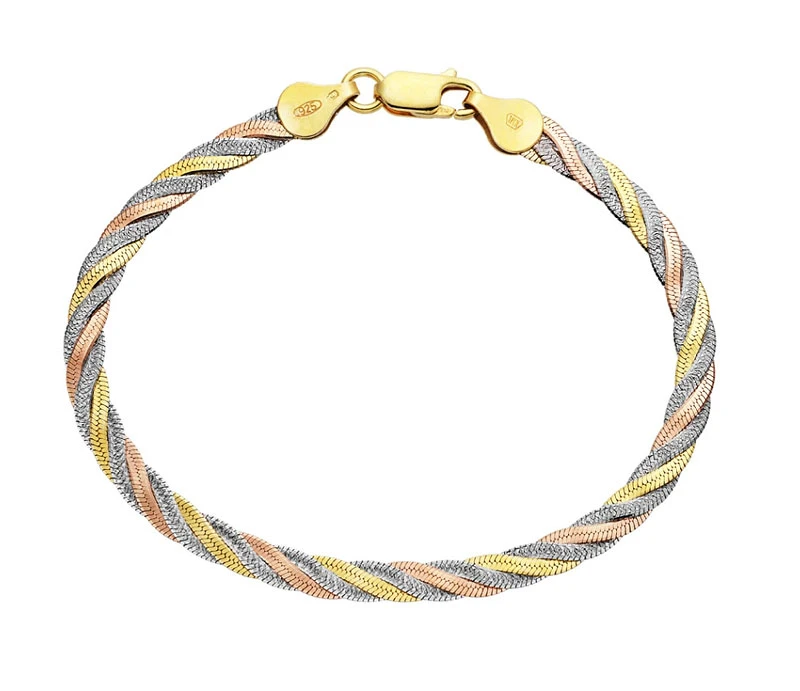 Stříbrný pozlacený náramek ze stříbra ryzosti 925/1000 pro ženy a dívky. Náramek je pozlacený žlutým a růžovým zlatem, stříbrné části náramku jsou porodiované. Úprava povrchu zlacením a rodiováním dodává šperku jasnou barvu s leskem a současně zajišťuje dlouhodobý bezvadný vzhled náramku. Zapínání náramku je na karabinku. Náramek je široký 4mm.