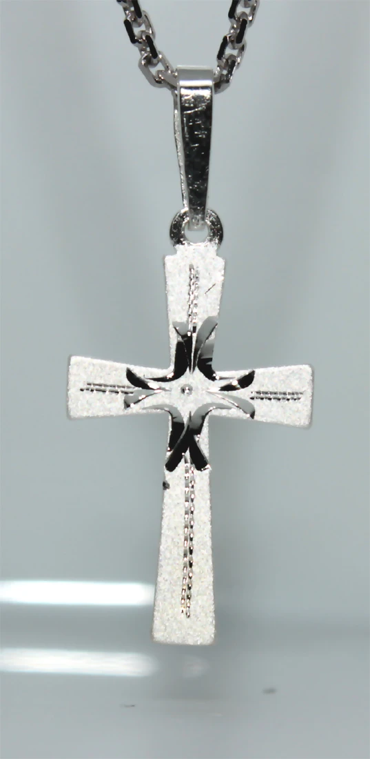 Stříbrný přívěsek křížek na krk vyrobený ze stříbra 925/000. Povrch křížku je ozdobený rytinou. Rozměr křížku 21x12 mm. Závěsným očkem na přívěsku lze provléct stříbrný řetízek s průměrem do 1,5 mm.