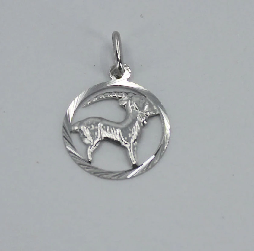 Přívěsek na krk se znamením Kozoroh (22.12- 20.1). Přívěsek je vyrobený ze stříbra 925/1000. Povrch přívěsku je leštěný. Přívěšek má porhodiovaný povrch. Úprava povrchu rhodiováním dodává přívěsku jasnou barvu s leskem a současně zamezuje přirozené oxidaci stříbra. Porhodiovaný povrch přívěsku je také odolnější vůči poškrábání, šperk si tak uchová po dlouhou dobu bezchybný vzhled. Závěsným očkem na znamení lze provléct řetízek s průměrem do 3,0mm. Celková "výška" přívěsku včetně závěsného oka 22mm, průměr ozdoby se znamením kozorožce 15mm.