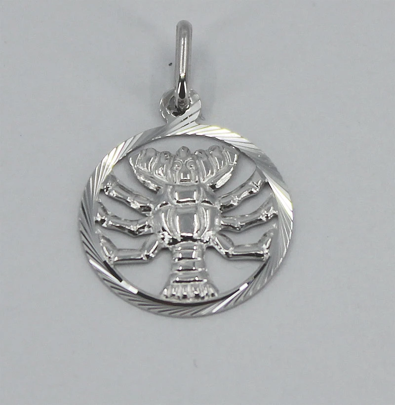 Přívěsek na krk se znamením Rak (22.6 - 22.7). Přívěsek je vyrobený ze stříbra 925/1000. Povrch přívěsku je leštěný. Přívěšek má porhodiovaný povrch. Úprava povrchu rhodiováním dodává přívěsku jasnou barvu s leskem a současně zamezuje přirozené oxidaci stříbra. Porhodiovaný povrch přívěsku je také odolnější vůči poškrábání, šperk si tak uchová po dlouhou dobu bezchybný vzhled. Závěsným očkem na znamení lze provléct řetízek s průměrem do 3,0mm. Celková "výška" přívěsku včetně závěsného oka 22mm, průměr ozdoby s rakem 15mm.