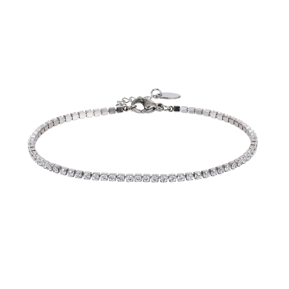Dámský tenisový náramek vyrobený z chirurgické oceli osazený čirými zirkony. Náramek je široký 1,75mm. Délka náramku je možné nastavit v rozmezí 18-20cm.