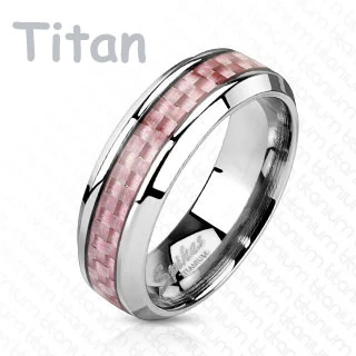 Dámský titanový prsten s karbonovým vláknem. Karbon má růžovou barvu. Kraje prstenu jsou leštěné. Prsten je široký 6mm. Zajímaví titanový prsten.