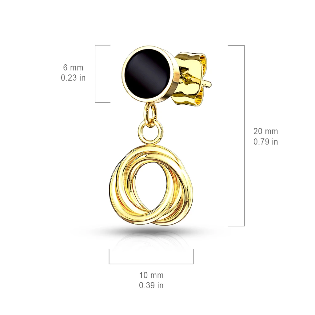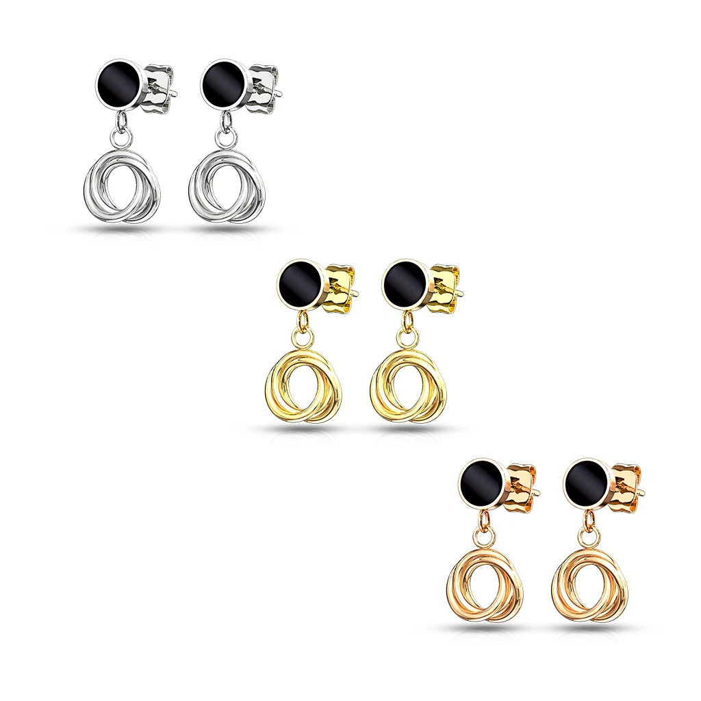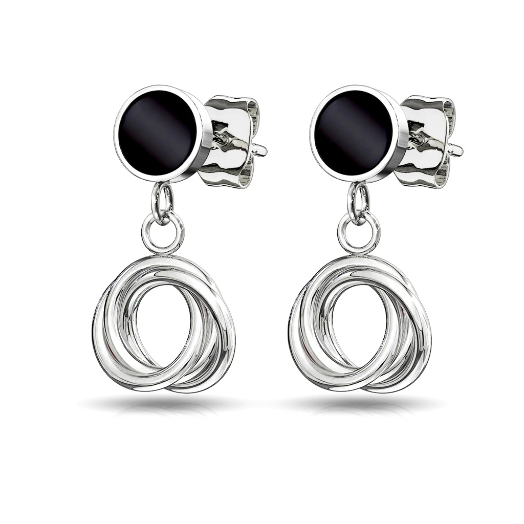 Visací naušnice z chirurgické oceli pro ženy a dívky. Naušnicové zapínání je na puzetky. Průměr černé ozdoby 6 mm, průměr závěsné části náušnice 10 mm, celková délka náušnice 20 mm. Cena je platná za pár náušnic.