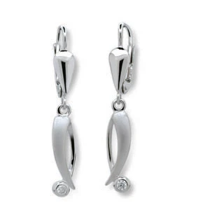 Stříbrné visací náušnice se zapínáním na klapku. Zapínání náušnic má rozměr 12x6mm, náušnice jsou dlouhé 32mm.