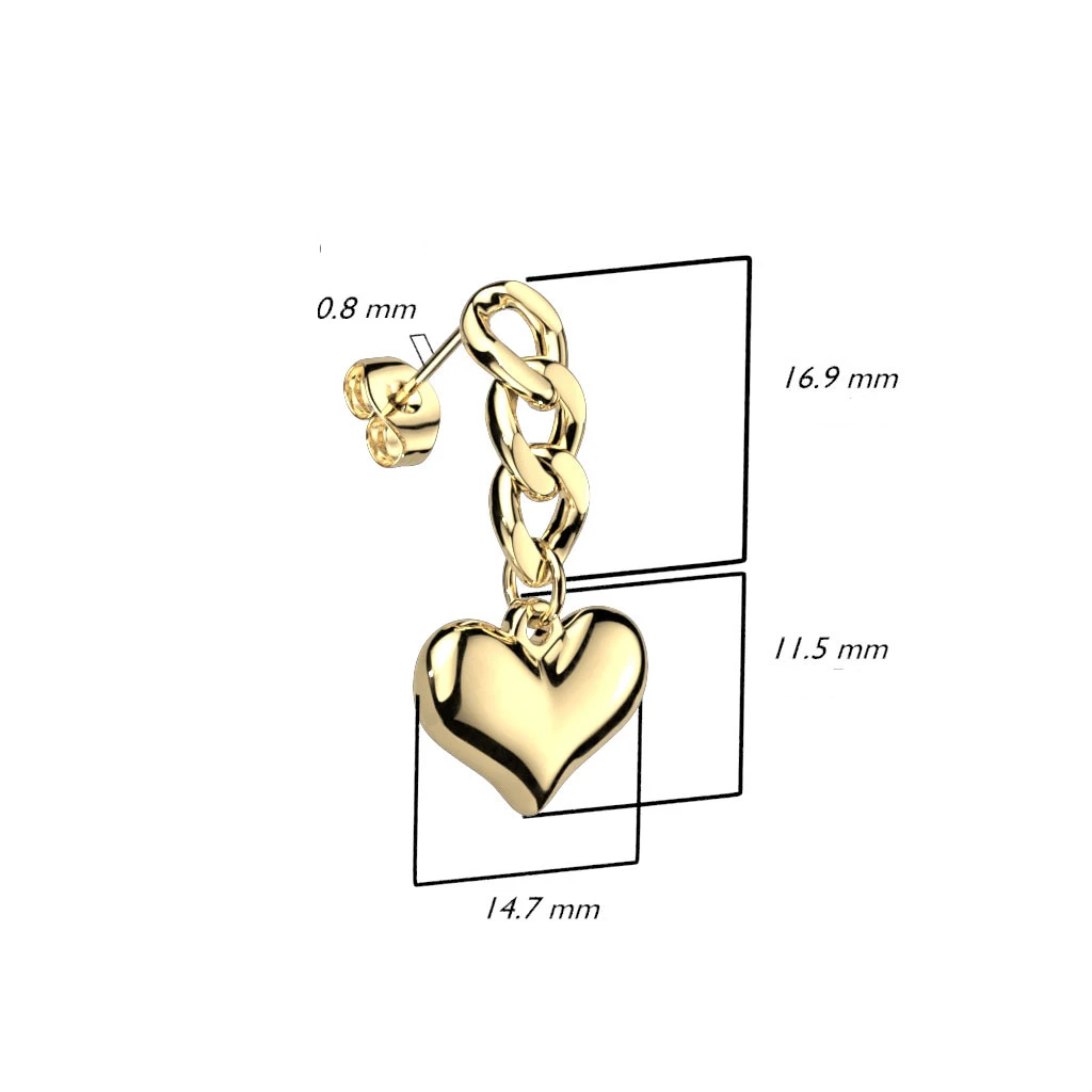 Ocelové náušnice visací s ozdobou srdíček. Povrch náušnic je leštěný. Náušnicové zapínání je na puzetky. Náušnice jsou dlouhé 28,4 mm. Rozměry náušnic najdete vyobrazené na podpůrné fotografii.
