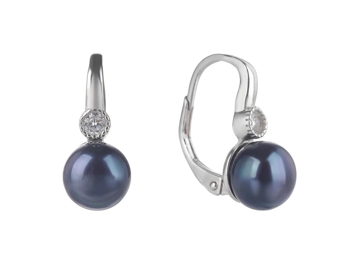 Visací stříbrné náušnice s perlami a zirkony. Náušnice jsou vyrobené ze stříbra ryzosti 925/1000 a osazené jsou přírodními perlami a prvotřídními zirkony. Povrch náušnic je porodiovaný. Nanesené rodium dodává náušnicím jasnou barvu s leskem, a současně zajišťuje dlouhodobý bezchybný vzhled náušnic. Náušnicové zapínání je na klapku Rozměry 16x7,5mm náušnic najdete na podpůrné fotografii.