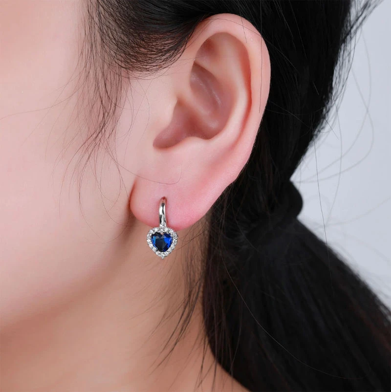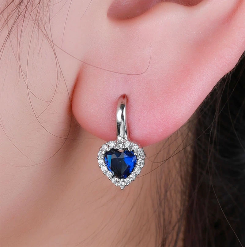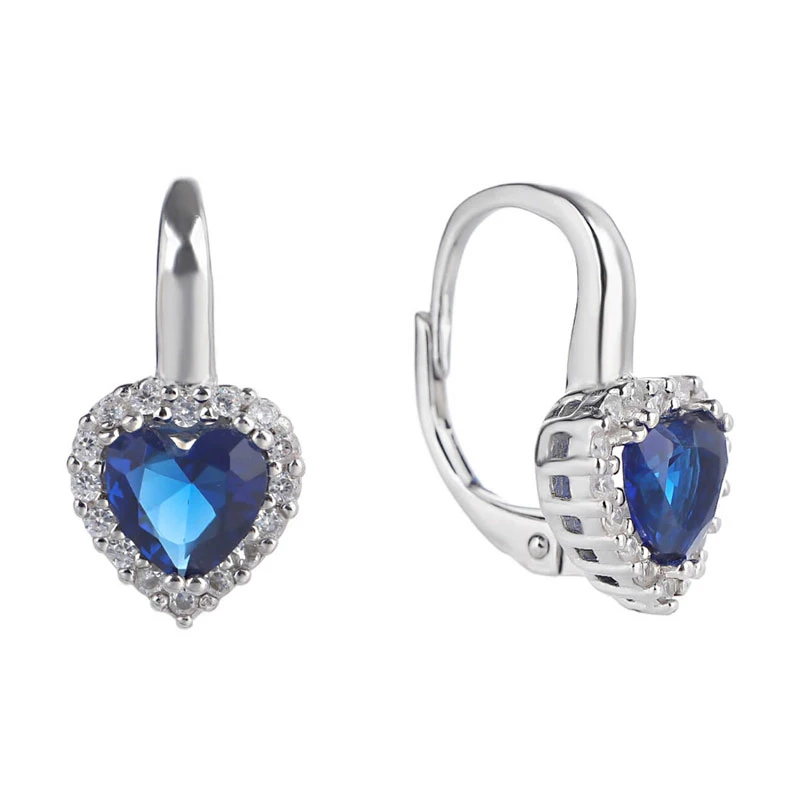 Náušnice srdíčka ze stříbra ryzosti 925/1000 ozdobené modrými a bílými zirkony. Povrch náušnic je porhodiovaný, úprava povrchu rhodiováním dodává náušnicím jasnou barvu s leskem, chrání povrch náušnic proti poškrábání a potlačuje přirozenou oxidaci stříbra, náušnice tak budou dlouhou dobu bezvadný vzhled. Náušnice jsou dlouhé 17 mm, srdíčko má rozměr 9x9 mm. Náušnicové zapínání je na klapku.