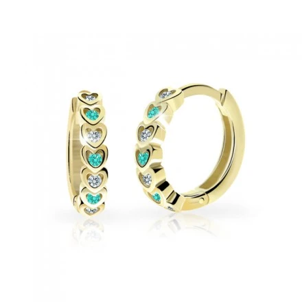 Zlaté dětské náušnice C3340Z-Zeleno modrá