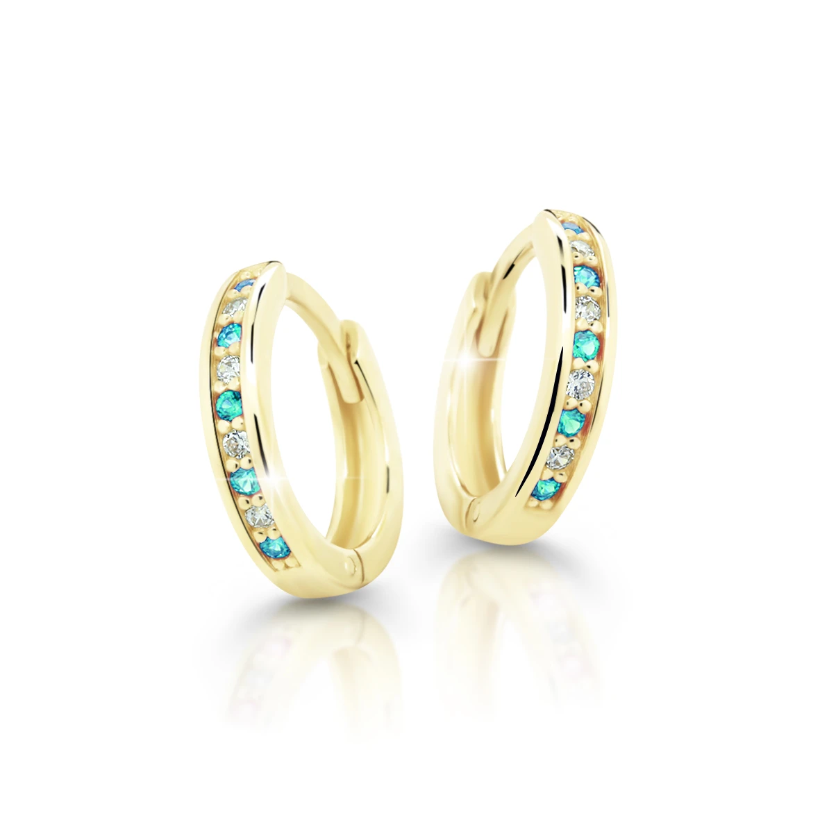Zlaté dětské náušnice C3342Z-Zeleno modrá