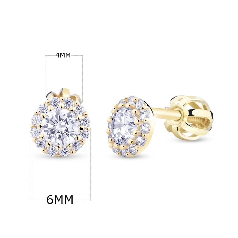Náušnice se zirkony z růžového zlata ryzosti 585/1000. Dámské zlaté náušnice pecky zdobené prvotřídními zirkony. Průměr ozdoby 6mm. Náušnicové zapínání je na šroubek o průměru 4mm. Náušnice jsou samozřejmě řádně označené a opuncované podle puncovního zákona.