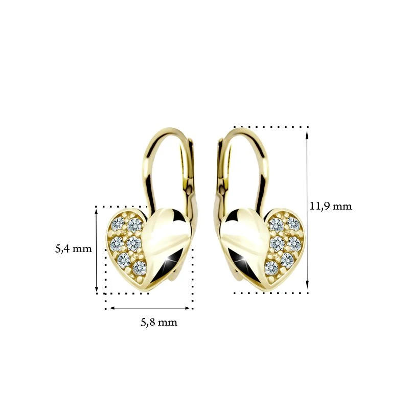 Dívčí zlaté náušnice ze žlutého zlata 585/000. Náušničky jsou vhodné pro dívky od pátého roku. Zapínání náušnic je na klapku. Rozměr ozdoby 5,4x5,8mm, celková výška náušničky 11,9mm.