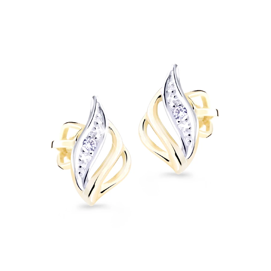 Náušnice ze žlutého zlata ryzosti 585/000. Zlaté náušnice pecky se zirkony se zapínáním na šroubek.