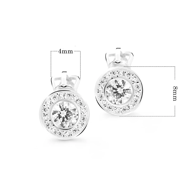 Zlaté náušnice osazené zirkony. Krásné dámské náušnice vyrobené ze žlutého zlata ryzosti 585/000. Rozměry náušnic najdete zobrazené na podpůrné fotografii. Náušnicové zapínání je na šroubek.