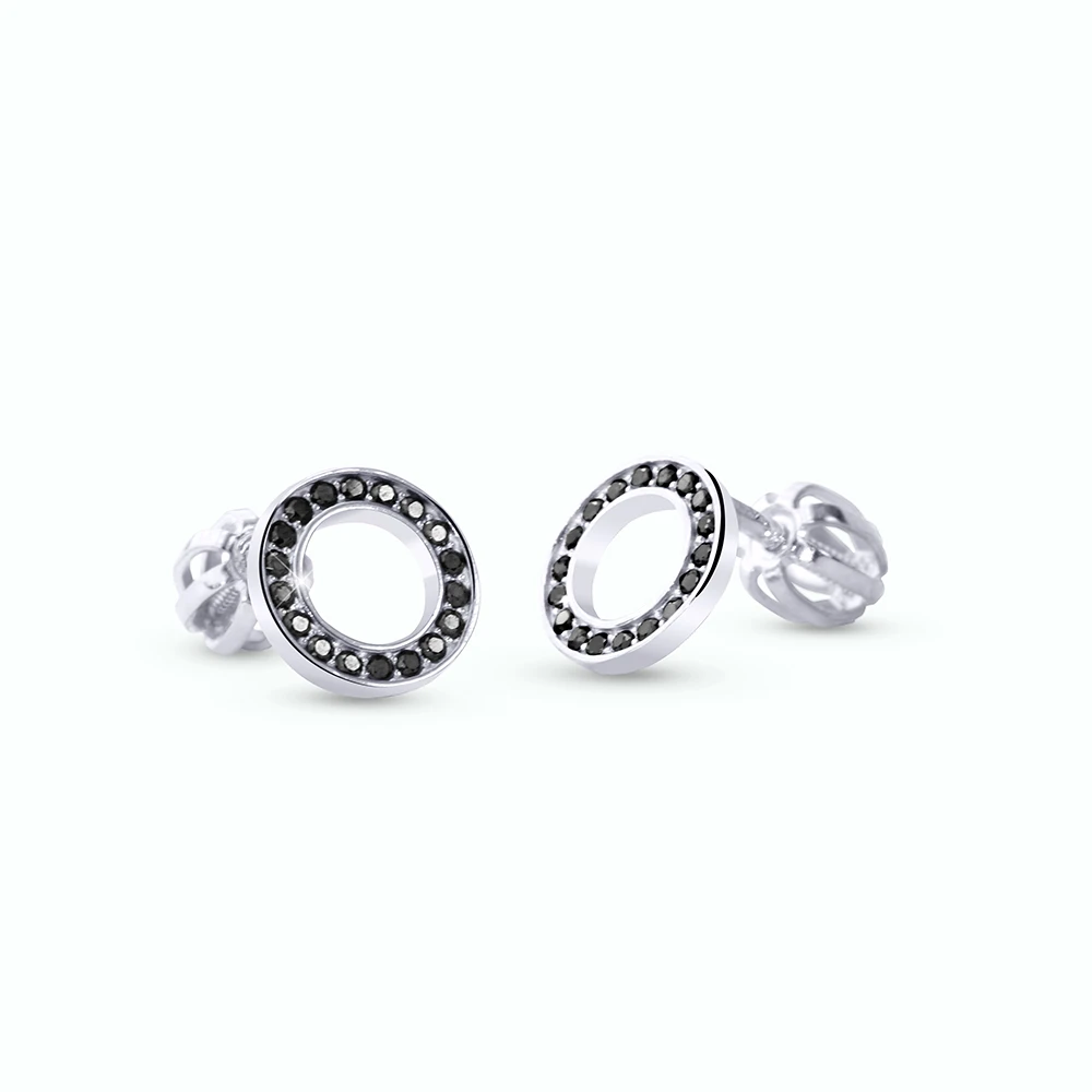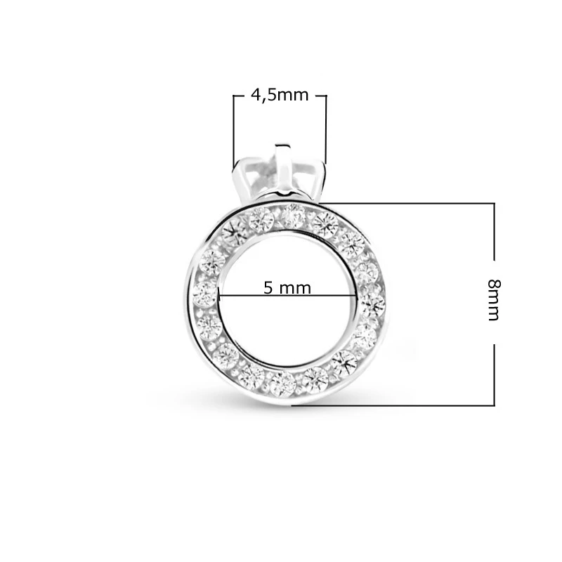 Náušnice na šroubek vyrobené z bílého zlata 585/1000. Náušnice jsou ozdobené prvotřídními zirkony. Náušnicové zapínání je na praktický šroubek. Vnější průměr náušnic 8 mm. Rozměry náušnic najdete vyobrazené na podpůrné fotografii.