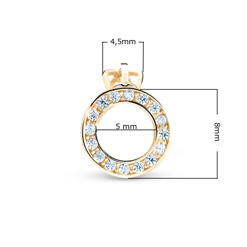 Náušnice na šroubek vyrobené ze žlutého zlata 585/1000. Náušnice jsou ozdobené prvotřídními zirkony. Náušnicové zapínání je na praktický šroubek. Vnější průměr náušnic 8 mm. Rozměry náušnic najdete vyobrazené na podpůrné fotografii.